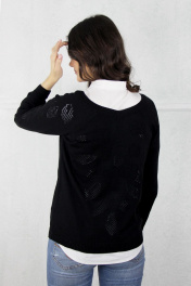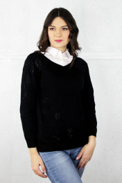Джемпер реглан с V-образным вырезом из хлопка и безрукавным отверстиями Полесье С1004-20 0С2126-Д43 170,176 черный_антрацит