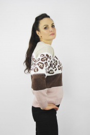 Джемпер женскии второго слояодежды.прямого силуэта со спущенной линией плеча, длинным рубашечным рукавом,Круглый вырез горловины обработан бейкой.