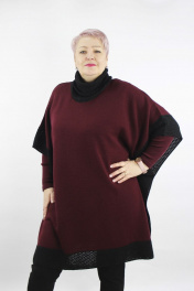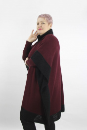 Пончо из шерсти с ажурным краем и воротником Полесье С1507-18 9С0013-Д43 158,164 винно-красный