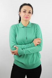 Джемпер вязаный из хлопка с воротником и пуговицами Полесье С1673-23 4С0673-Д43 158,164 зимняя_зелень