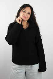 Демисезонный трикотажный джемпер с разрезом и воротником Полесье С1853-24 4С0746-Д43 158,164 глубокий_черный
