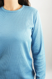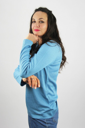 Джемпер женский второго слоя одежды с длинным втачным рукавом. Круглый вырез горловины окантован бейкой. Низ изделия и рукава подогнуты на 4,0см.