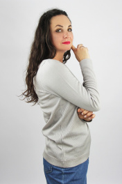 Джемпер женский второго слоя одежды с длинным втачным рукавом. Круглый вырез горловины окантован бейкой. Низ изделия и рукава подогнуты на 4,0см.