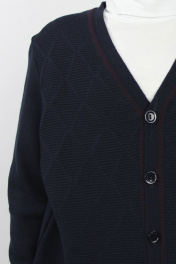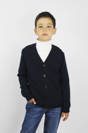 Жакет второго слоя одежды, с длинным втачным рукавом. V-образный вырез горловины и срезы борта обработаны бейкой. Застежка на петли и пуговицы. Количество пуговиц на рост 122/128 - 4+1 шт., на др.роста - 5+1 шт.