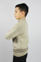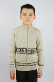 Жакет для мальчика прямого силуэта, с длинным втачным рукавом. Изделие на застежке- молнии. Воротник стойка высотой 5,0+-1 см. По низу переда изделия, с левой стороны пришивной декоративный элемент.