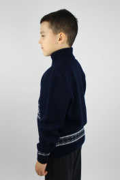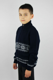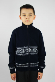 Жакет для мальчика прямого силуэта, с длинным втачным рукавом. Изделие на застежке- молнии. Воротник стойка высотой 5,0+-1 см. По низу переда изделия, с левой стороны пришивной декоративный элемент.