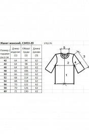 Жакет женский второго слоя одежды,прямого силуэта с длинным втачным рукавом.Круглый вырез горловины обработан бейкой сдвоенная кулирная гладь высотой в готовом виде 1,5+-0,2см.Край борта ,низ изделия и рукавов заработаны.