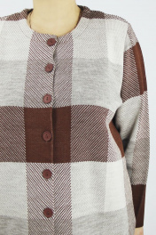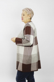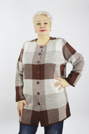 Жакет второго слоя одежды прямого силуэта, с длинным втачным рукавом. Круглый вырезголовины, на обтачке. Край борта подогнут. Застежка на петлии пуговицы.