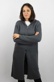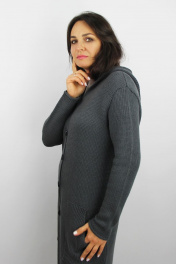 Удлиненный серый жакет с капюшоном и двуцветной отделкой Полесье С2701-18 8С8514-Д43 158,164 зола