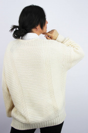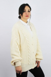 Жакет бежевый из вязаного трикотажа с поясом и длинным рукавом Полесье С2761-22 3С8779-Д43 170,176 экрю
