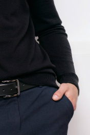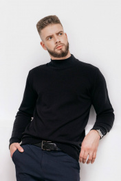 Демисезонный вязаный свитер с двойной стойкой и прямым силуэтом Полесье С3157-23 3С3214-Д43 182,188 глубокий_черный