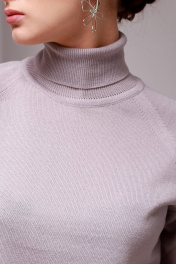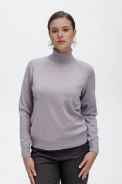 Свитер прямого силуэта, второго слоя одежды, с длиным рукавом реглан. Круглый вырез горловины обработан высоким ластичным воротником-ластик1х1.Низ стана и рукавов заработан ластиком 1х1