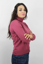 Демисезонный вязаный свитер полуприлегающего силуэта с воротником стойкой Полесье С3433-17 7С1582-Д43 158,164 брусника