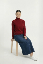 Свитер женский из трикотажа с высоким воротником-лестиком Полесье С3433-17 7С1582-Д43 158,164 спелая_вишня
