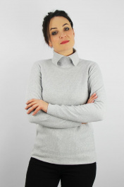 Демисезонный вязаный свитер второго слоя с разрезом Полесье С3716-23 3С3016-Д43 170,176 св.серый_меланж