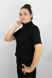 Демисезонный женский свитер вязаный короткий рукав Полесье С3742-24 4С0712-Д43 170,176 глубокий_черный