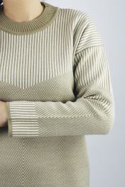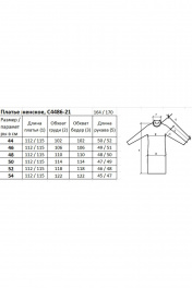 Платье женское, второго слоя одежды. Прямого силуэта, со спущенной линией плеча, с зауженным книзу рукавом с прямой проймой. Круглая горловина закеттлевана бейкой высотой в гот. виде 4,5см из них 3,5 ластик 2х2 + чулок 1+-0,2 см. По краю бейки проложена "Новинка" 110т. Низ рукава и стана заработан чулком выс. 1+-0,2 см.