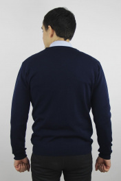 Джемпер незначительно заужен к низу с длинным рукавом.V-образный вырез горловины обработан двойной ластичной бейкой (полукетт), высотой в гот. виде 2,5см+-0,2см. Низ изделия и низ рукавов заработан ластиком 1х1