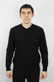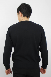 Джемпер второго слоя одежды, прямого силуэта, с длинным втачным рукавом. Низ изделия и рукавов заработан ластиком 1х1 высотой в г.в. 6,5±0.5см., по краю заработка проложена пряжа "Новинка" 110т. V-образный вырез горловины обработан двойной бейкой (п/кеттл.) ластик 1х1 высотой в г.в. 3,0±0.3см