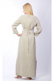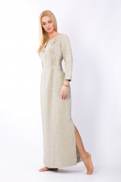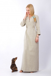 Платье делает женщину милой, изящной и элегантной. Модель полуприлегающего силуэта, декорированная защипами спереди, имеет карманы в боковых швах и рукав ¾. Длина макси помогает удлинить фигуру, сделав ее более изящной, а тонкий пояс акцентирует внимание на талию. Именно силуэт создает первое впечатление о женщине, а такой силуэт подходит не только стройным, но и тем, кто обладает более пышными формами, создавая правильные пропорции и делая фигуру более привлекательной. В этом платье будет комфортно в любую погоду, ведь при пошиве данной модели используется только натуральный лен, который проходит специальную обработку, придавая изделию мягкость и шелковистость, делая его менее сминаемым и безусадочным. Цвет натурального льна обладает внутренней теплотой, способствует душевной гармонии и заряжает положительной энергией. Подходит для любого типа внешности.