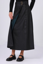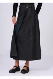 Юбка -крой А-силуэта, большая глубина запаха, на подкладке.Пояс съемный с пряжкой. Тип карманов: левый карман в боковом шве, правый - накладной.Вид застёжки: петли и пуговицы.