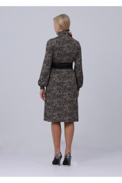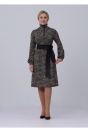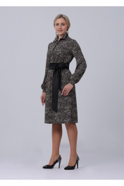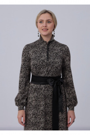 Платье со съемным атласным поясом. Воротник-стойка с растегивающимися пуговицами в цвет пояса. Длинные рукава на манжетах. Без карманов