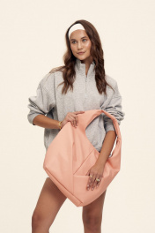 Кожаная сумка-шоппер на плечо в розовом цвете Polisto Mirai L персиковый