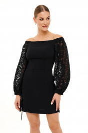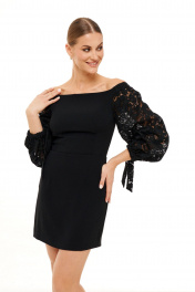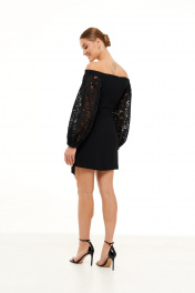 Черное платье с ажурной отделкой и длинными рукавами Prestige 5410 черный