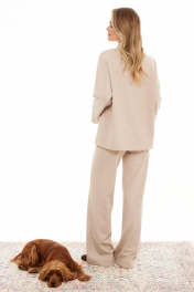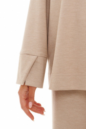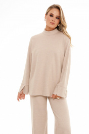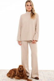 Джемпер: Фактура: гладкая. Ткань: трикотажное полотно. Силуэт: прямой. Воротник: стойка. Рукава: спущенные, длиннные. Застежка: сзади потайная застежка -"молния". Конструктивные элементы: манжеты. Подкладка: нет. Брюки: Фактура: гладкая. Ткань: трикотажное полотно. Силуэт: прямой. Конструктивные элементы: цельнокроеный пояс с эластичной тесьмой. Тип посадки: средняя.