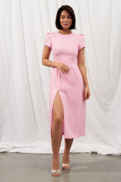 Миди-платье Айрис с разрезом и завязками из льна Puella 3001 розовый