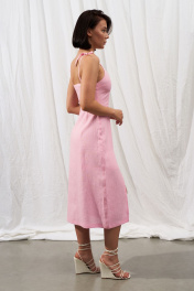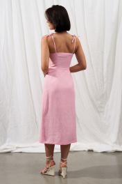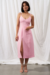 Платье миди с V-образным вырезом и разрезом Puella 3004 розовый_миди
