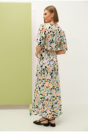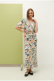 Костюм двойка:блузка и юбка. Блузка на запах полуприлегающего силуэта. Юбка полуприлегающего силуэта, немного расклешенная к низу,длина 95 см, застегивается на потайную молнию сбоку.