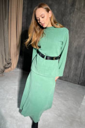 Комплект:джемпер и юбка. Комплект из мягкого на ощупь материала, средней плотности, теплый. Ремень в комплекте. Джемпер прямого кроя, свободного силуэта. Юбка полуприлегающего силуэта, расширяется к низу, на плотной резинке. Джемпер:длина 71 см.Ог 96/100/104/108 см.Длина рукава 56 см.Ширина плеча 11,5/12/12,5/13 см.Об 98/102/110 см. Юбка: длин 91 см.Талия 60,64,68,72 см. Талия на резинке,хорошо тянется.Об 100,104,108,112 см.