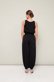 Стильный 2-предметный комплект: топ и брюки алладины, выполнен из струящейся ткани с матовым блеском. Топ прямого кроя на бретелях. Комфортные брюки свободного силуэта с боковыми наклонными карманами. Притачной пояс и манжеты на резинке.