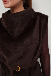Стильный жилет прямого силуэта, выполнен из искусственного меха на подкладке. Цельнокроеный воротник-стойка. Идеальный выбор для холодных дней, который сочетает в себе комфорт, тепло и актуальный дизайн. *Ремень представлен как вариант стилизации образа.