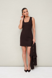 Стильный 2-предметный комплект, состоящий из платья и жакета, выполненный из трикотажа нейлона. Платье прилегающего силуэта, отрезное по линии талии в длине мини. Горловина оформлена вырезом каре. Застёжка в среднем шве по спинке на потайную молнию. Жакет полуприлегающего силуэта, с центральной застёжкой на петли и акцентные пуговицы. Длинные втачные рукава. Спинка со средним швом.