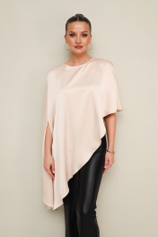 Блузка с ассиметричным кроем, выполнен из струящейся ткани с благородным матовым блеском. Элемент одежды, который создает множество вариантов стилизации образов.