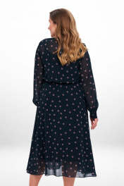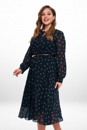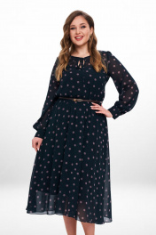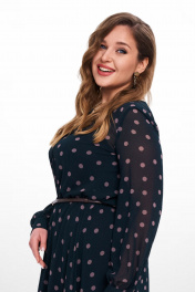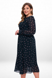 Позвольте себе восхитительное ощущение роскоши и уверенность в том, что выглядите безупречно. Романтичное и нежное платье в горошек с первой примерки убеждает, что должно остаться в гардеробе. Лёгкий летящий верх+ приятная к телу трикотажная подкладка создают выигрышный микс. Наряд выглядит аккуратно, не режет глаз обильным декором. Интересные элементы у платья всё же есть. Это приятный зелёный цвет и всегда актуальный принт “горох”, широкие манжеты и горловина-капелька с завязкой. Благодаря идеальной длине до середины щиколотки платье красиво смотрится и с каблуками, и с обувью на плоском ходу. Особый шарм шифоновому платью придает контрастный ремешок коричневого цвета. Наряд идеален для визита в ресторан или театр, семейного торжества. Изысканный, но при этом комфортный и ненавязчивый. Длина рукава 62 см (+ - 1 см) Длина платья по спинке 126 см (+ - 3 см)