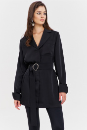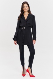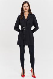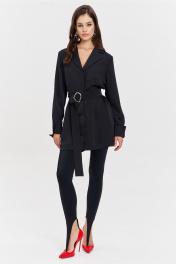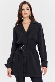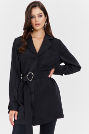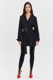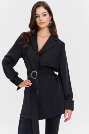 Круглогоднее черное платье свободного кроя с разрезом и поясом RINKA 1345/1 черный