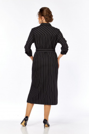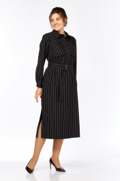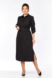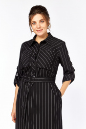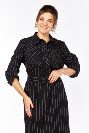 Платье-рубашка в полоску Модное платье-рубашка из плательно-костюмной ткани в изысканную полоску — идеальное сочетание шика и современности. Универсальная длина и разрезы по боковым швам придают образу лёгкость и динамику, а пояс выгодно подчёркивает линию талии, создавая женственный силуэт. Классический рубашечный воротник и центральная планка на пуговицах позволяют регулировать глубину выреза, добавляя образу элегантность и индивидуальность. Нагрудные карманы придают практичность, а длинные рукава с манжетами можно подвернуть и зафиксировать при помощи паты и пуговиц — для более расслабленного и стильного варианта. Это платье станет универсальным решением для офиса, прогулок и вечерних встреч, легко сочетаясь как с классической обувью, так и с кроссовками. измерения измерения изделия в готовом виде, см 50 52 54 полуобхват по груди 58 60 62 полуобхват по талии 58 60 62 полуобхват по бедрам 60 62 64 длина плеча 13 13 13 длина рукава 58 58 58 ширина рукава (полуобхват руки) 20,5 21 21,5 Длина изделия по среднему шву спинки 119 119 119