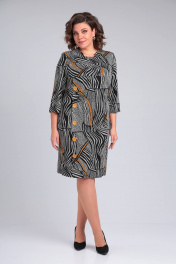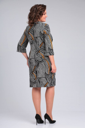 Платье женское прямого силуэта с подрезом под линией груди. В правом рельеф имитация шлицы до низа с декоративными пуговицами. Спинка стачная, приталенная. Рукав одношовный прямой 3/4. В горловину вшит воротник стойка с фигурным вырезом. Подход для всех типов фигур, визуально стройнит и вытягивает. Изделие из лёгкого и приятного к телу трикотажа, комфортного как осенью, зимой так и весной. Платье одновременно может быть и повседневным и праздничным. В таком платье вы всегда будете выглядеть уверенно и элегантно.