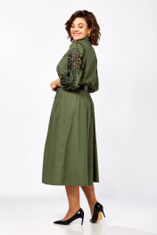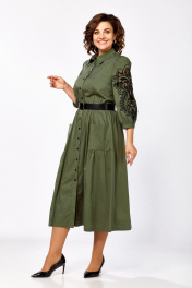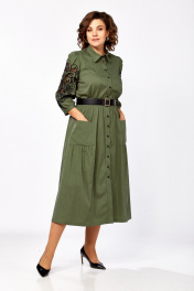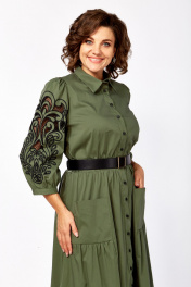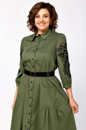 Представленное платье — это не просто одежда, а произведение искусства, сочетающее в себе дизайнерское вдохновение и современный стиль! Платье расширенного силуэта, отрезное по линии талии. Лиф с нагрудными вытачками, юбка впереди с подрезом и накладными карманами. Перед с центральной застежкой на петли-пуговицы. Воротник на стойке. В боковых швах расположены функциональные карманы. Рукав одношовный, втачной с манжетой. Выполнена необычная изящная вышивка на рукавах, что придает уникальность и завершенность, а съемный пояс акцентирует внимание на талии. Это стильное и легкое платье идеально сочетает в себе элегантность и комфорт. Благодаря продуманному крою и длине ниже колена, оно подойдет как повседневное офисное платье для работы, так и в качестве нарядного вечернего наряда в весенне-летний период. Такое платье станет любимым элементом гардероба, добавляя каждому образу нотки шарма и утонченности.