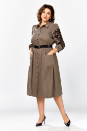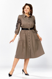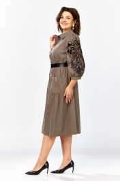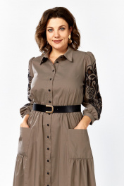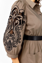 Представленное платье — это не просто одежда, а произведение искусства, сочетающее в себе дизайнерское вдохновение и современный стиль! Платье расширенного силуэта, отрезное по линии талии. Лиф с нагрудными вытачками, юбка впереди с подрезом и накладными карманами. Перед с центральной застежкой на петли-пуговицы. Воротник на стойке. В боковых швах расположены функциональные карманы. Рукав одношовный, втачной с манжетой. Выполнена необычная изящная вышивка на рукавах, что придает уникальность и завершенность, а съемный пояс акцентирует внимание на талии. Это стильное и легкое платье идеально сочетает в себе элегантность и комфорт. Благодаря продуманному крою и длине ниже колена, оно подойдет как повседневное офисное платье для работы, так и в качестве нарядного вечернего наряда в весенне-летний период. Такое платье станет любимым элементом гардероба, добавляя каждому образу нотки шарма и утонченности.