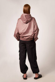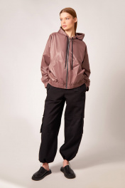 Куртка-ветровка: - прямого силуэта - на подкладка - застёжка на металлическую молнию - спущенная линия плеча - капюшон со шнуром - по спинке и переду декоративный горизонтальный шов - накладные карманы по переду - низ изделия и рукавов на широкой резинке