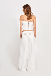 Топ из джинса: - прилегающий силуэт - на корсетных косточках - по спинке молния - верх переда усилен поролоновыми чашками