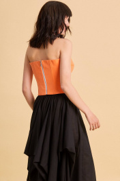 Топ из джинса: - прилегающий силуэт - на корсетных косточках - по спинке молния - верх переда усилен поролоновыми чашками