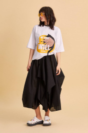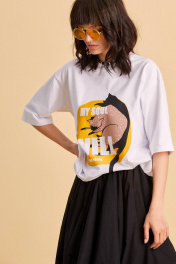 Джемпер: - свободный крой oversize - спущенная линия плеча - вырез горловины из основной ткани - печать спереди