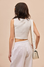Топ: - укороченный - прилегающий силуэт - круглый вырез горловины - укороченная линия плеча - принт спереди