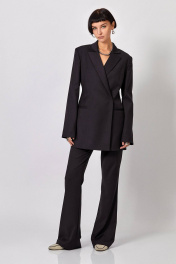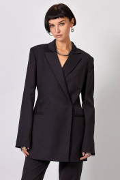 Жакет: - полуприталенный силуэт - пиджачный воротник - спереди вытачки - рукава втачные двухшовные - прорезные карманы - застежка на кнопки - пояс в комплекте - на подкладке - внутренние карманы