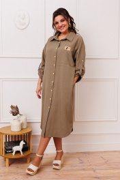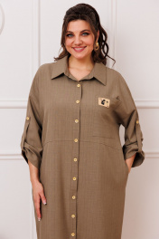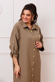 Платье прямого силуэта до икры из текстиля и шифона Romanovich Style 1-2391 темный_беж
